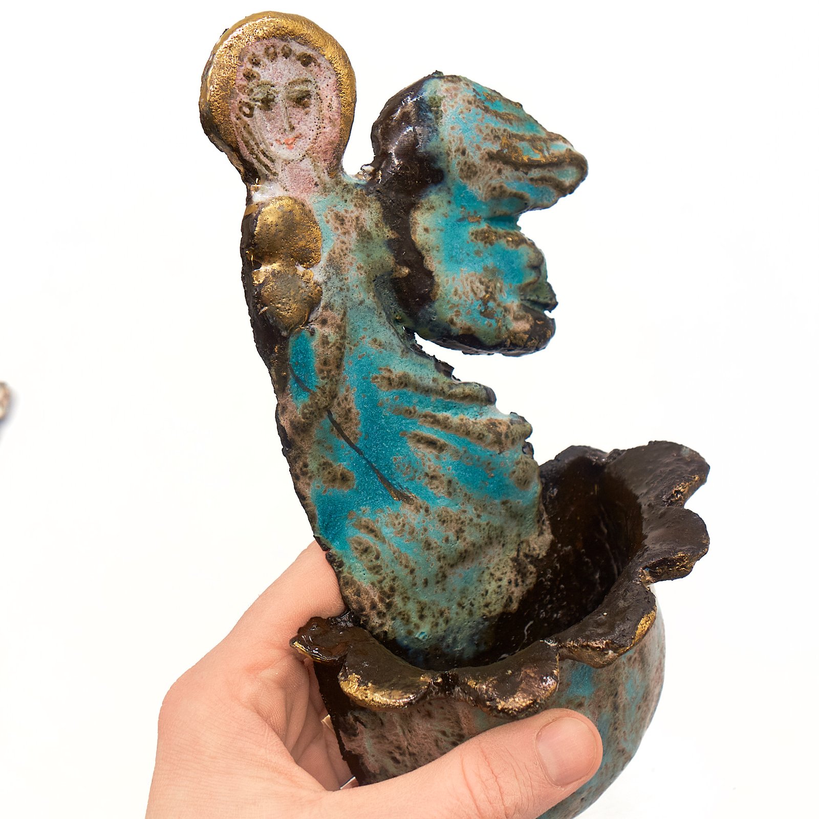 Ceramika szkliwiona, ręcznie malowana, wypalana w wysokiej temperaturze.